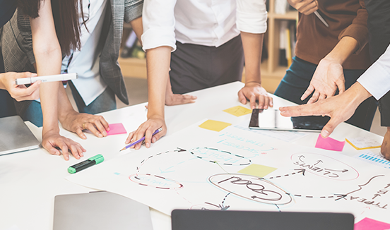 クライアントのビジョンを明確にした上で、大きな地図を描き、現状に即したルートを共に設定します。